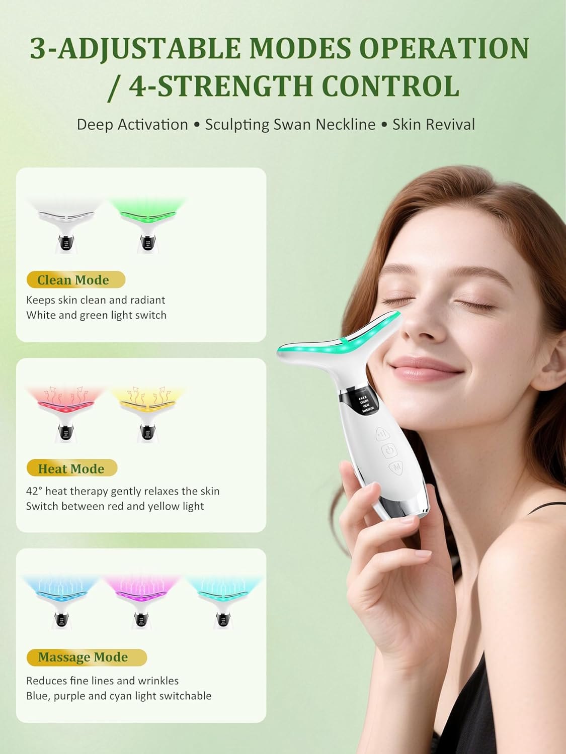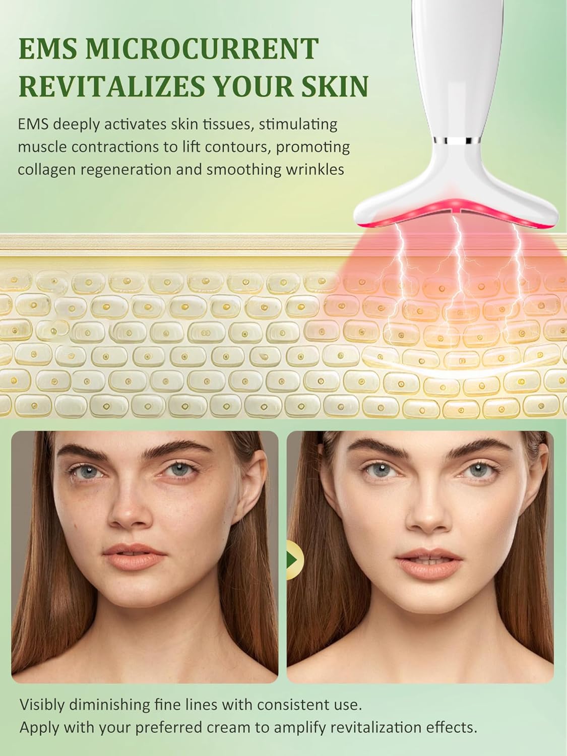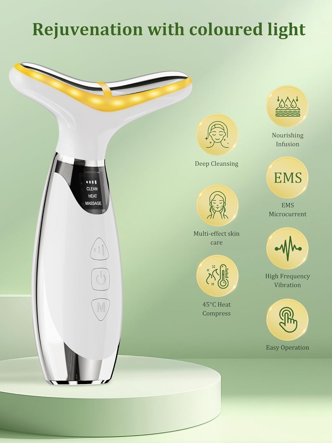 Best Gift-This 7-in-1 facial reviver combines LED lights, EMS microcurrent, and vibrations massage to visibly brighten and firm. Featuring warmth, customizable 3 modes and 4 intensity settings, travel-ready and ergonomic design, it simplifies skincare routines while working safely with serums for enhanced results.